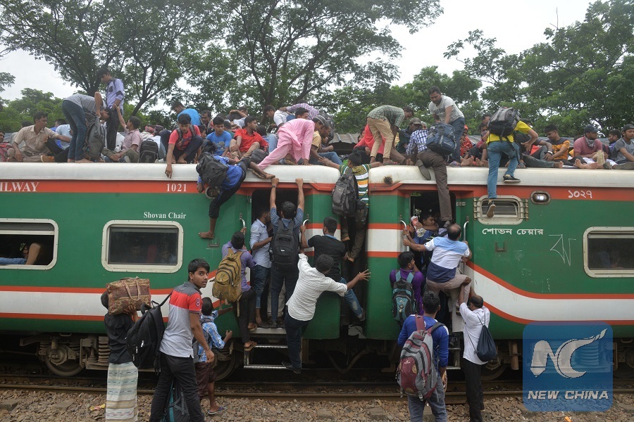 Homebound travelers crowd a train station in Dhaka, Bangladesh, on Aug. 20, 2018, during the Eid al-Adha festival. (Xinhua)