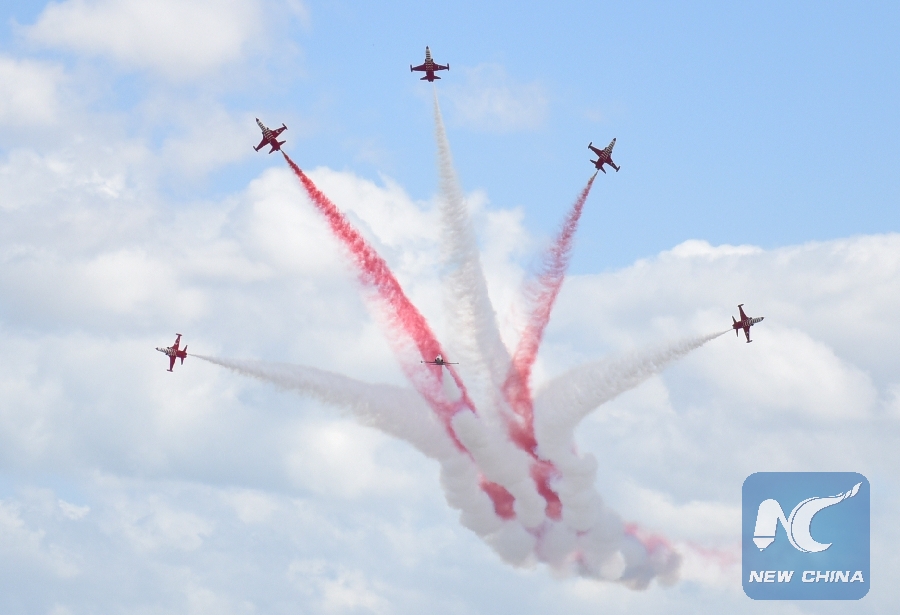 Turkey's Air Force aerobatic team performs air show in Istanbul, Turkey, on Sept. 20, 2018. (Xinhua/He Canling)