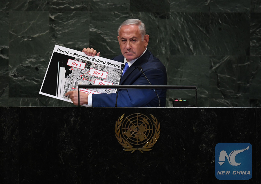 JERUSALEM, Oct. 1 (Xinhua) -- Israeli Prime Minister Benjamin Netanyahu on Monday accused Lebanon's Hezbollah of "lying" to the international community about its holding secret missiles.