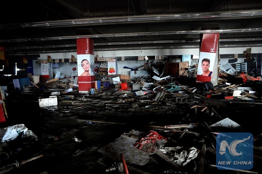 Debris of a shopping mall destroyed by an earthquake are seen in Palu, Indonesia on Oct. 4, 2018. (Xinhua/Agung Kuncahya B.)
