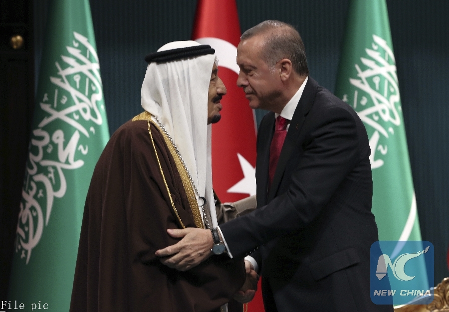 ANKARA, Oct. 14 (Xinhua) -- Turkish President Recep Tayyip Erdogan on late Sunday held phone talk with Saudi King Salman bin Abdulaziz Al Saud, discussing the disappearance of Saudi journalist Jamal Khashoggi, state-run Anadolu Agency reported.