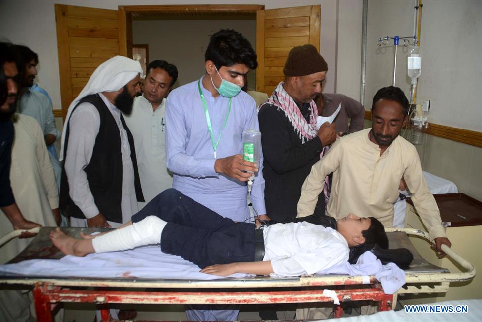 ISLAMABAD, Oct. 24 (Xinhua) -- At least four kids were injured when unknown gunmen attacked a school in Pakistan's southwest Quetta city on Wednesday.