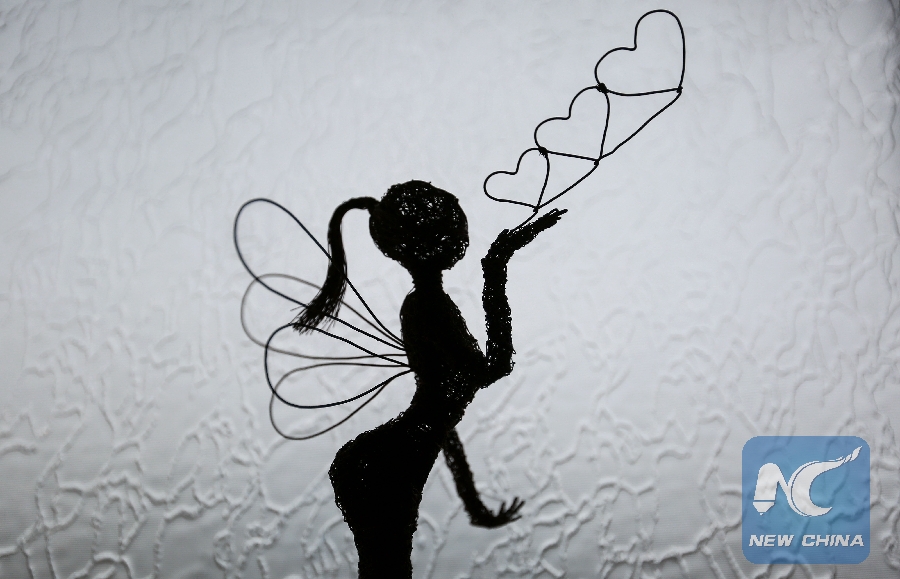 A work of wire sculpture made by young palestinian, Mahmoud al-Nabahin, in al-Bureij refugee camp in central Gaza Strip on Nov. 6, 2018. (Xinhua/Stringer)