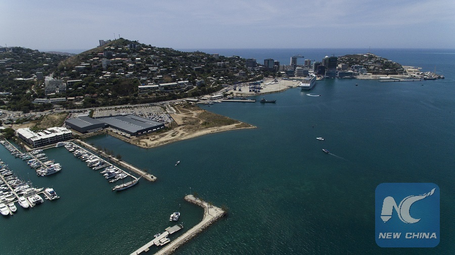 Photo taken on Nov. 10, 2018 shows the aerial view of Port Moresby, Papua New Guinea. (Xinhua/Bai Xuefei)