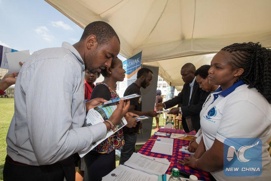 College graduates visit the stand of ASMAK at jobs recruitment fair for Kenyan students in Nairobi, Kenya, on Dec. 18, 2018. (Xinhua/Zhang Yu)