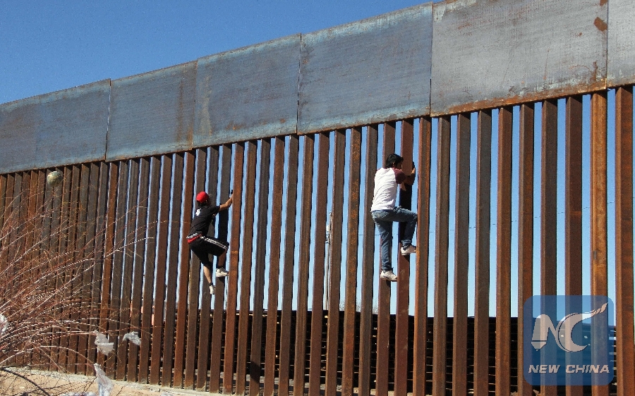 File Photo: Boys play around, climbing the border division between Mexico and the U.S. in Ciudad Juarez, Mexico on Jan. 26, 2017. (Xinhua/AFP)