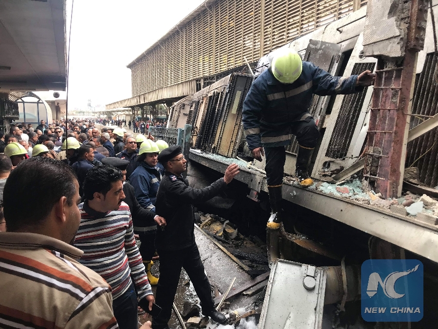 CAIRO, Feb. 27 (Xinhua) -- At least 20 people were killed and more than 40 others wounded when a fire erupted inside the main train station in the city center of Egypt's capital Cairo on Wednesday, state-run Nile TV reported.