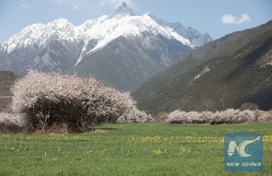 Peach forests begin to bloom in March in Nyingchi, southwest China's Tibet Autonomous Region. The lush pinkness of peach flowers in the valley and the white snow-capped mountains form a unique scenery at the Third Pole of the world.