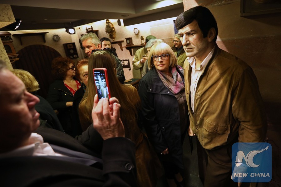 People visit a museum on the movie "Valter (Walter) Defends Sarajevo" in Sarajevo, Bosnia and Herzegovina (BiH), April 6, 2019. A museum based on the movie "Valter (Walter) Defends Sarajevo" was opened on Saturday here in the capital of Bosnia and Herzegovina, bringing back memories of 1970s when the movie was wildly popular, as well as values of anti-fascism and unity of the former Yugoslavia. (Xinhua/Nedim Grabovica)