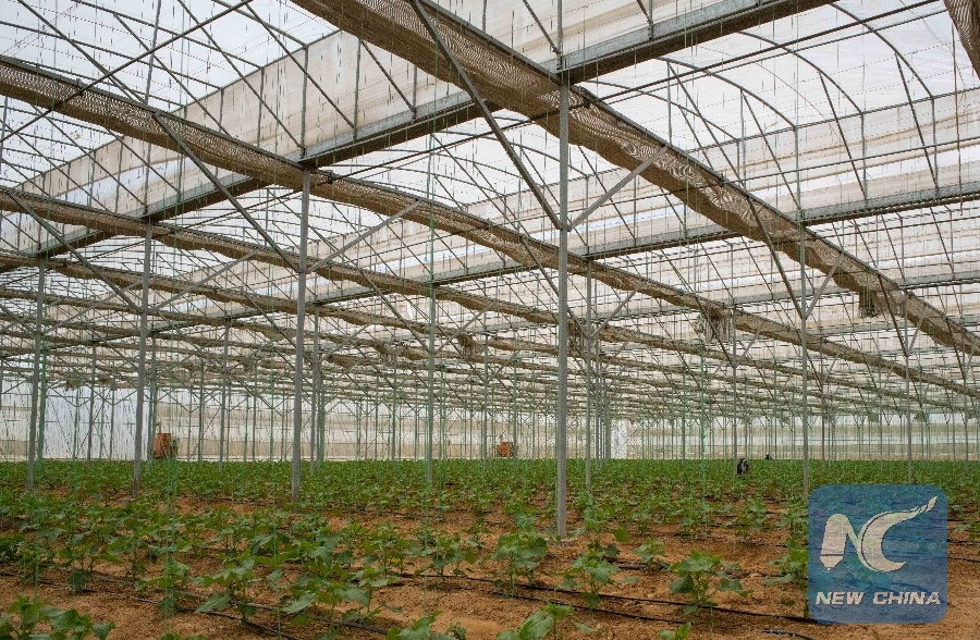 Photo taken on March 25, 2019 shows a greenhouse of a large joint project in the northeast of the Egyptian capital Cairo. (Xinhua/Wu Huiwo)