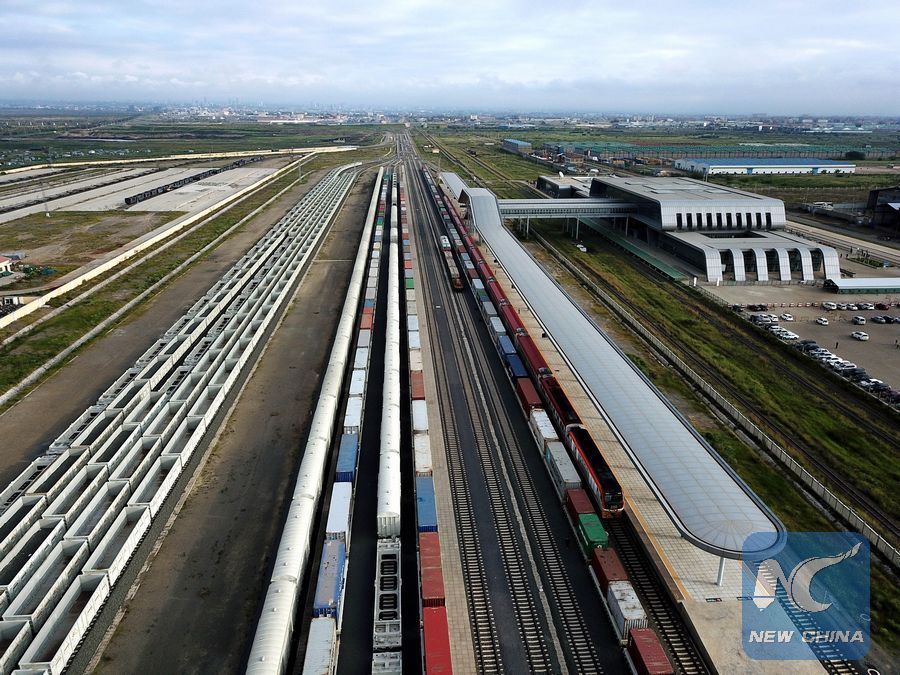 Aerial photo taken on June 3, 2018 shows trains at the Nairobi railway station in Nairobi, capital of Kenya. (Xinhua/Wang Teng)