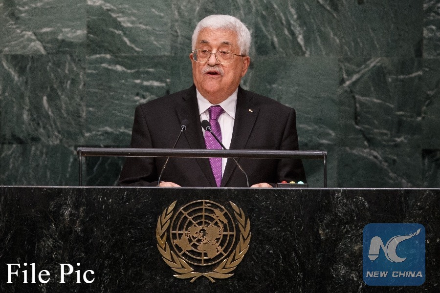 Palestinian President Mahmoud Abbas addresses the 70th session of the United Nations General Assembly at the UN headquarters in New York, on Sept. 30, 2015. (Xinhua File photo)