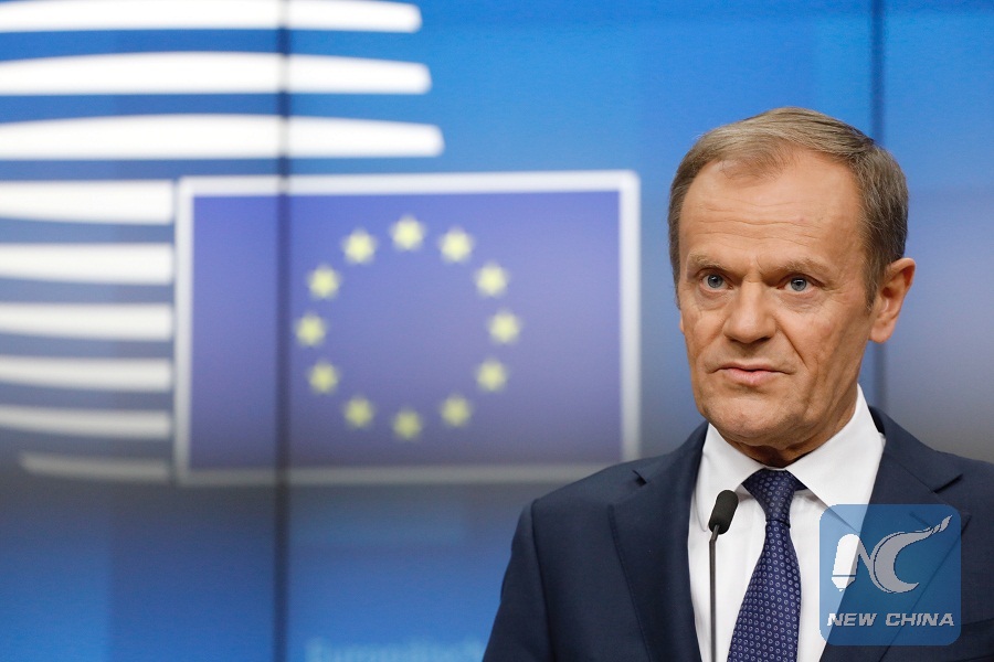 European Council President Donald Tusk attends a press conference after EU's spring summit in Brussels, Belgium, on March 22, 2019. (Xinhua/European Union)