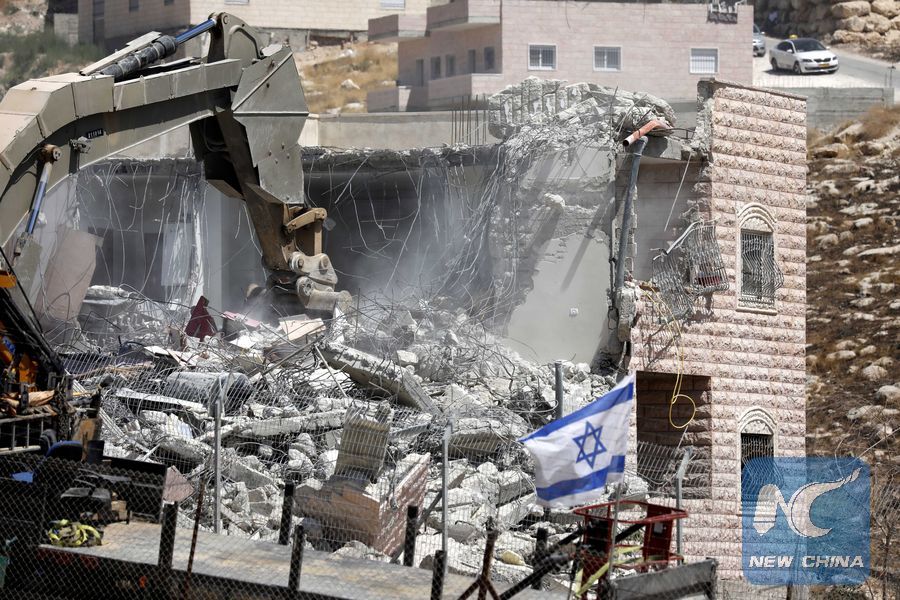 RAMALLAH, July 22 (Xinhua) -- Palestinians were outraged after Israeli forces began a massive house demolition of 10 Palestinian residential buildings in Wadi Al-Hummos area of East Jerusalem's Sur Baher town on Monday.