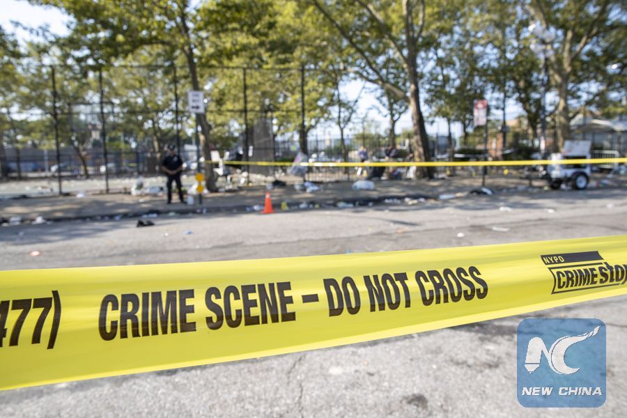 Photo taken on July 28, 2019 shows the site of a shooting at a local park in New York City's Brooklyn borough, the United States. (Xinhua/Wang Ying)