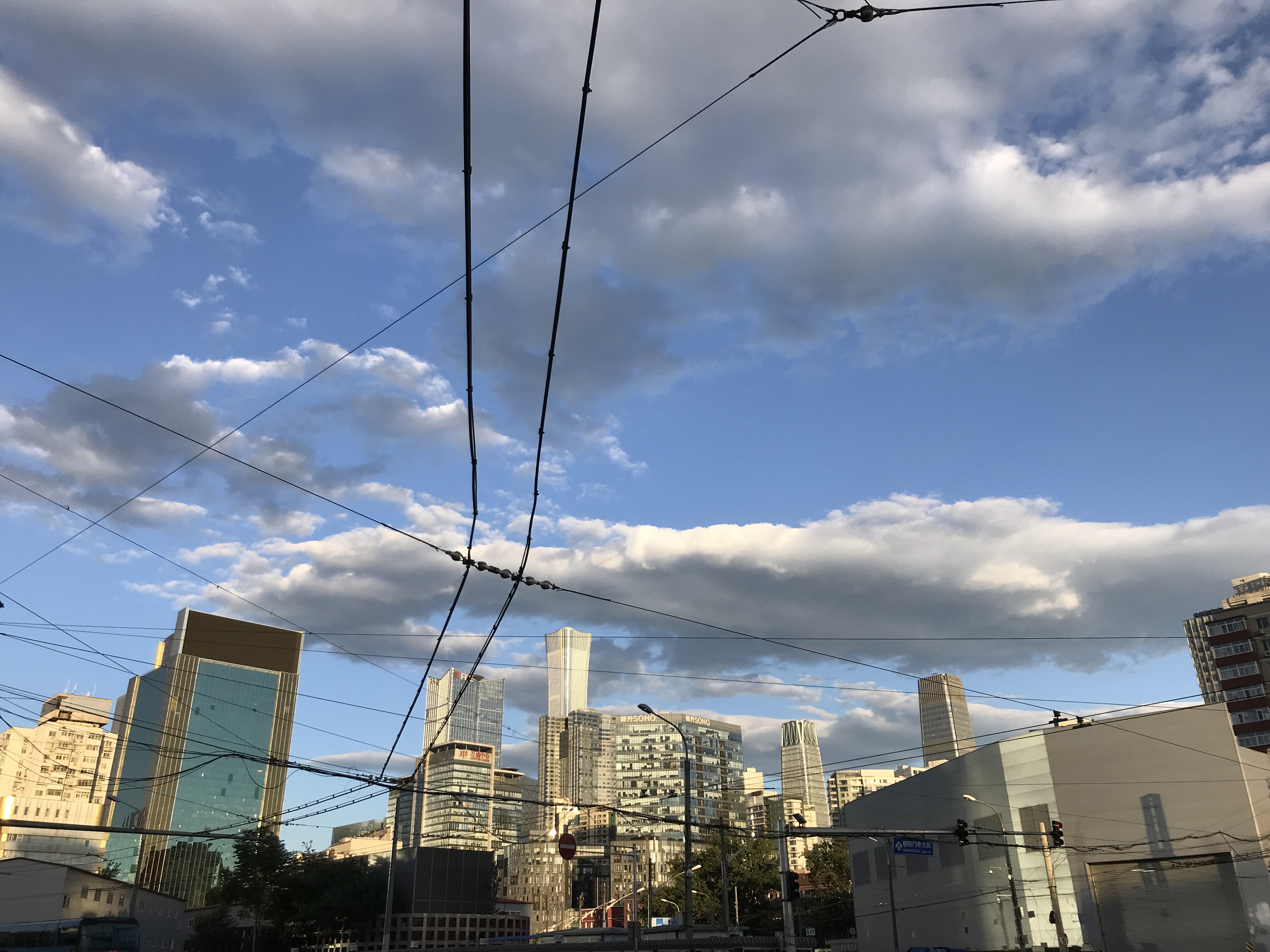 Mobile photo shows electric wires scratching the blue sky near Dongdaqiao Subway Station in Beijing, capital of China, on June 29, 2019. (Xinhua/Ma Ping)