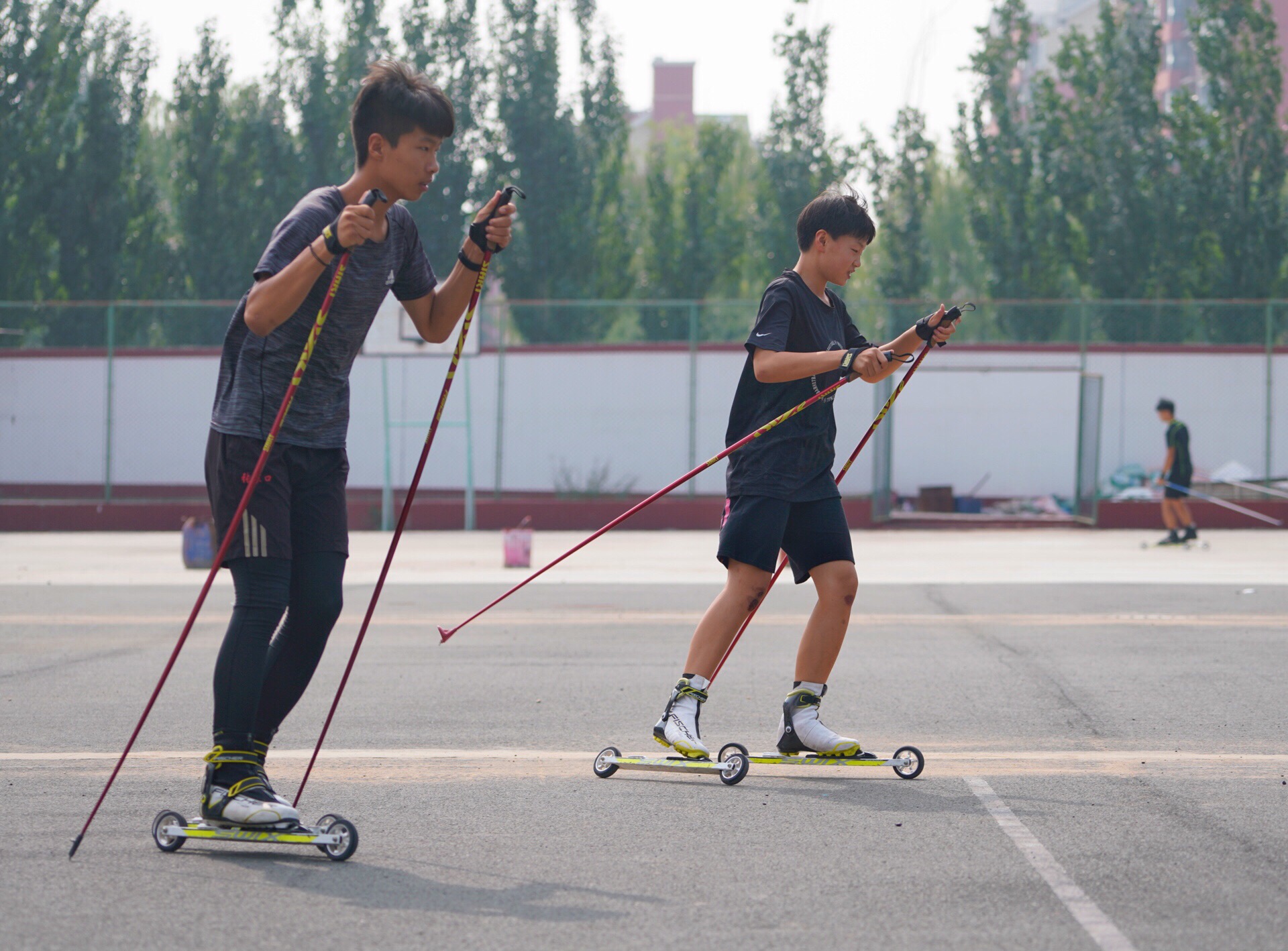 Students from a middle school in Zhangjiakou, Hebei Province, north China learn and practice skating despite it's summer time. (Xinhua/Zhu Xudong)