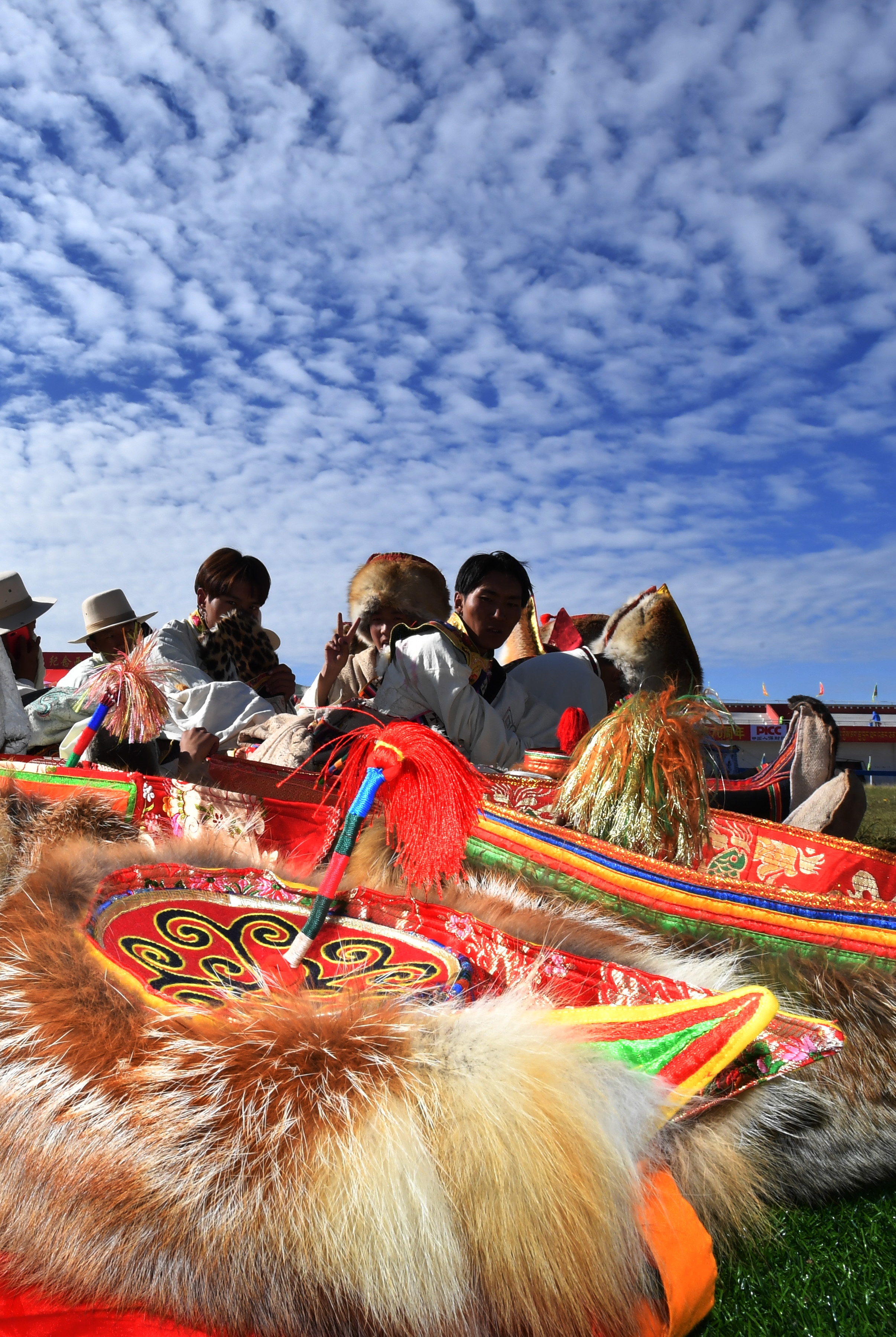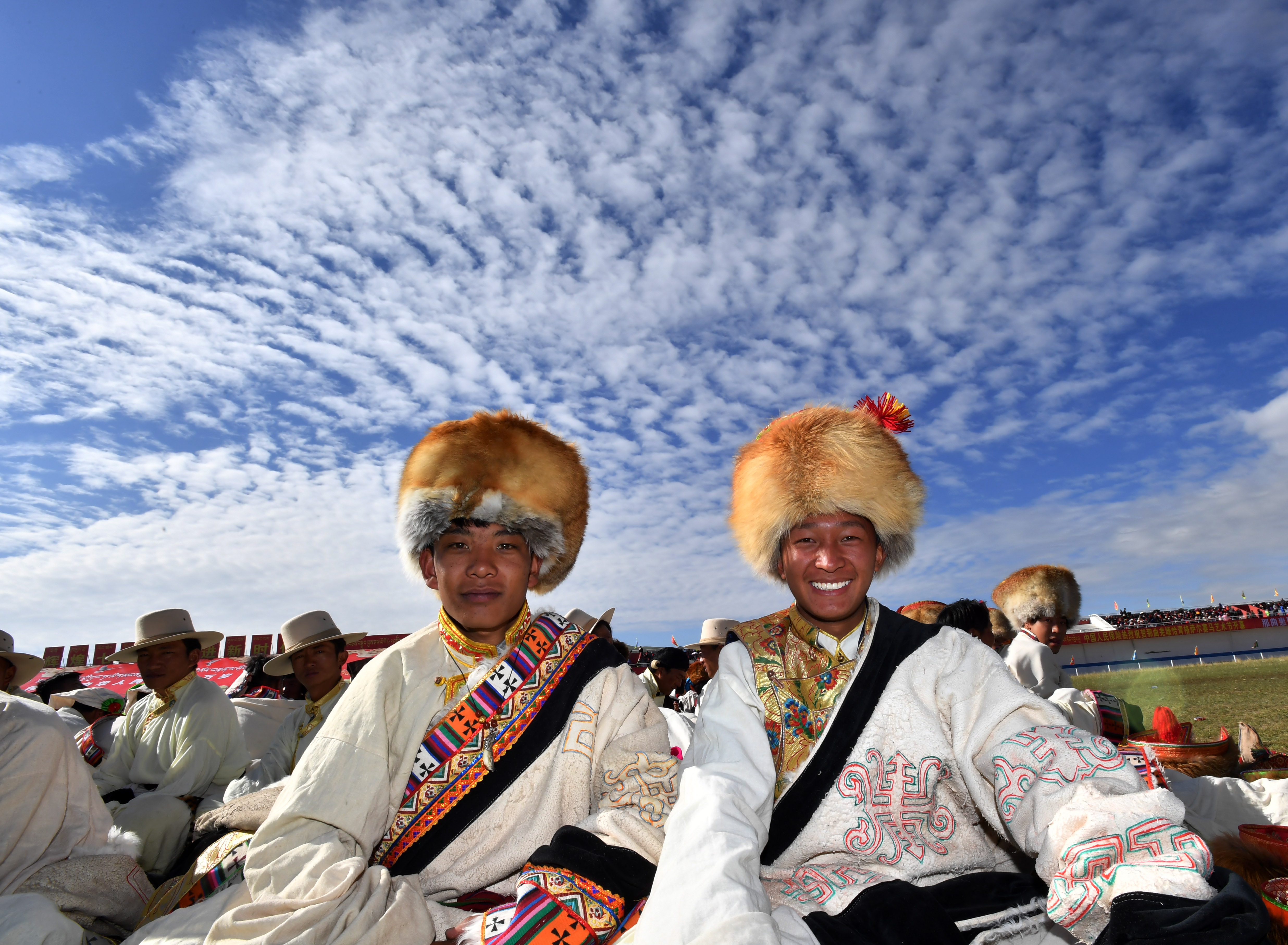 People wearing hats are seen during a horse racing festival in Nagqu City, southwest China's Tibet Autonomous Region. (Xinhua/Chogo)
