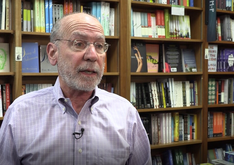 In this video screenshot, Bradley Graham, co-owner of Politics and Prose, a 35-year-old famous bookstore in Washington D.C., speaks during an interview with Xinhua in Washington D.C., the United States, on Aug. 26, 2019. (Xinhua)