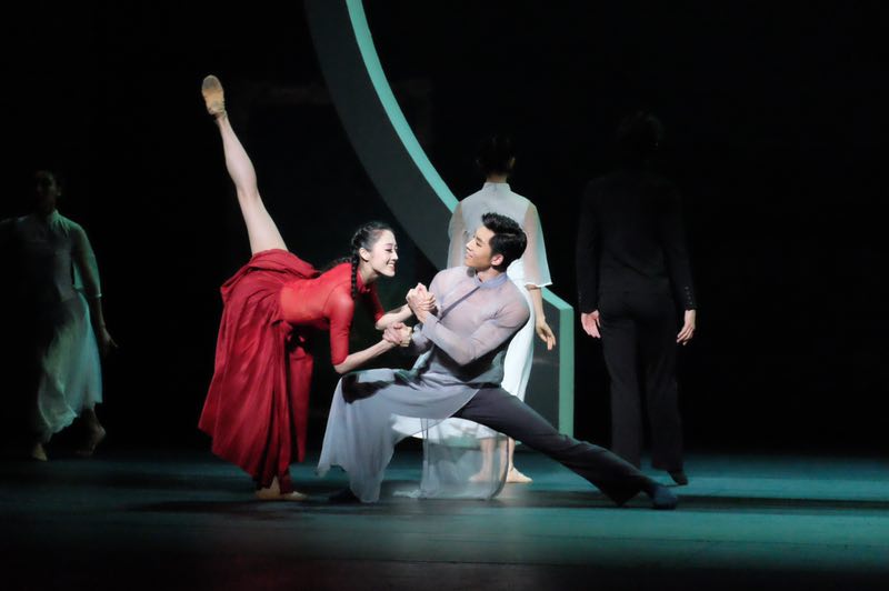 Chinese performers from China's Shanghai Opera House perform Chinese dance drama Early Spring in Dubai Opera on Sept. 12, 2019. (Xinhua photo)