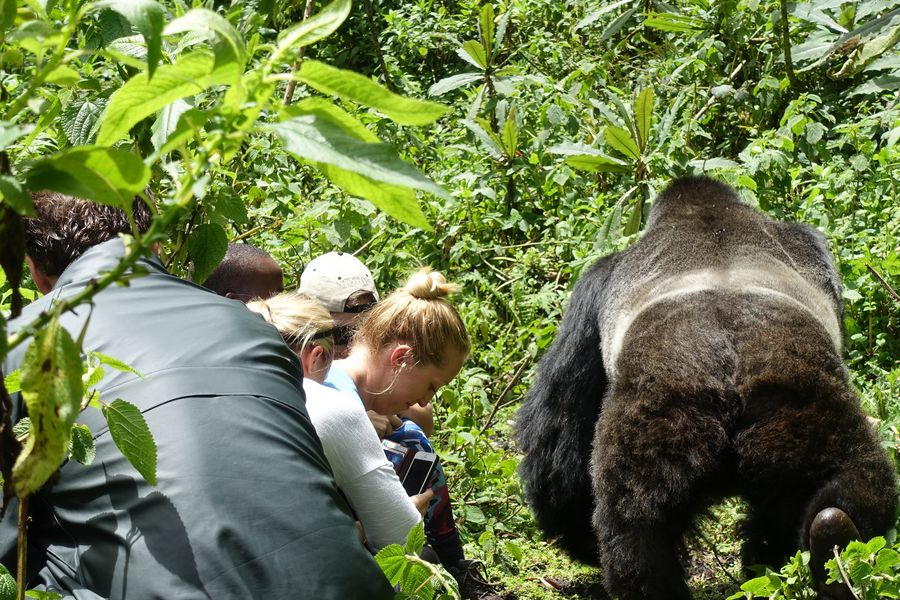 Tourists participate in the gorilla tracking at Volcanoes National Park in Rwanda, Oct. 8, 2016. (Xinhua/Yang Mengxi)
