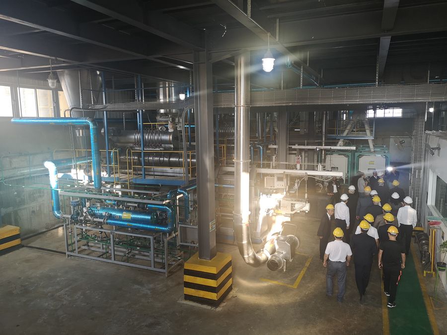 Visitors are led in a tour of the fish feed production lines inside the factory of New Hope Egypt Aquatic Technology Co., on Oct. 18, 2019. (Xinhua/Wu Danni)