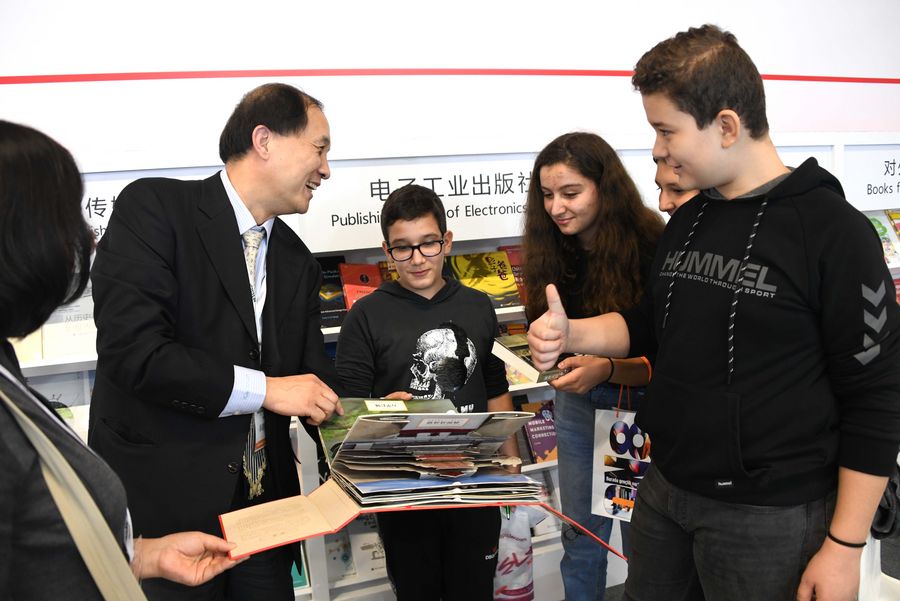 The books in Chinese, English and Turkish as well as Chinese calligraphy practice and tea ceremony drew crowds to the China stand, including students.
