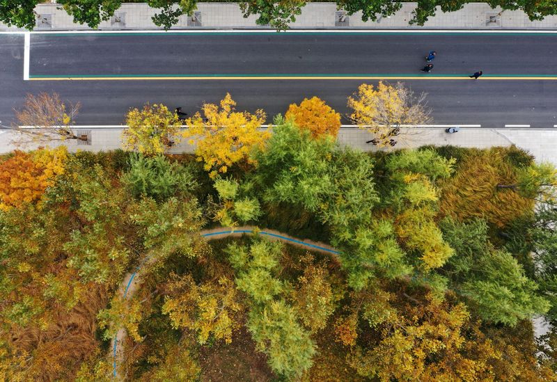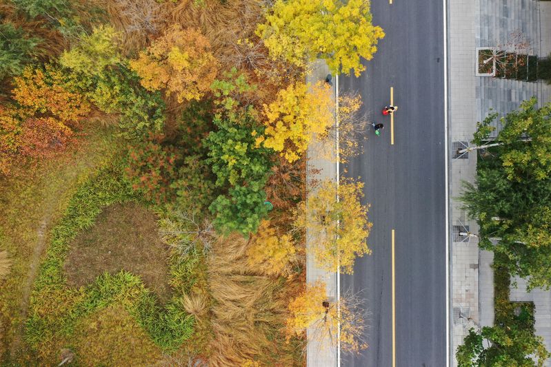 Aerial photo taken on Nov. 6, 2019 shows the autumn scenery in Xiongan New Area, north China's Hebei Province. (Xinhua/Xing Guangli)