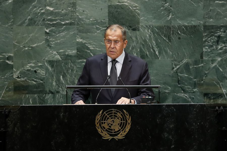 Russian Foreign Minister Sergey Lavrov addresses the General Debate of the 74th session of the UN General Assembly at the UN headquarters in New York, Sept. 27, 2019. (Xinhua/Li Muzi)