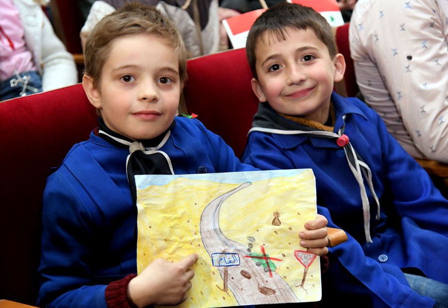 Young Syrians attend an awareness session about the danger of the conflict leftovers such as land mines in Damascus, capital of Syria, on March 7, 2019.(Xinhua/Ammar Safarjalani)