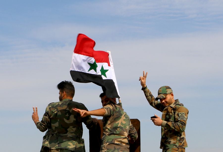 Syrian soldiers are seen upon deploying on the Syrian-Turkish border in the countryside of Qamishli city in al-Hasakah province, northeastern Syria, on Oct. 28, 2019. (Str/Xinhua)