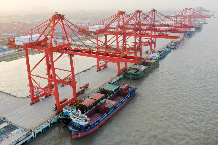 Photo taken on Oct. 30, 2019 shows the Taicang Port in east China's Jiangsu Province. (Xinhua/Li Bo)