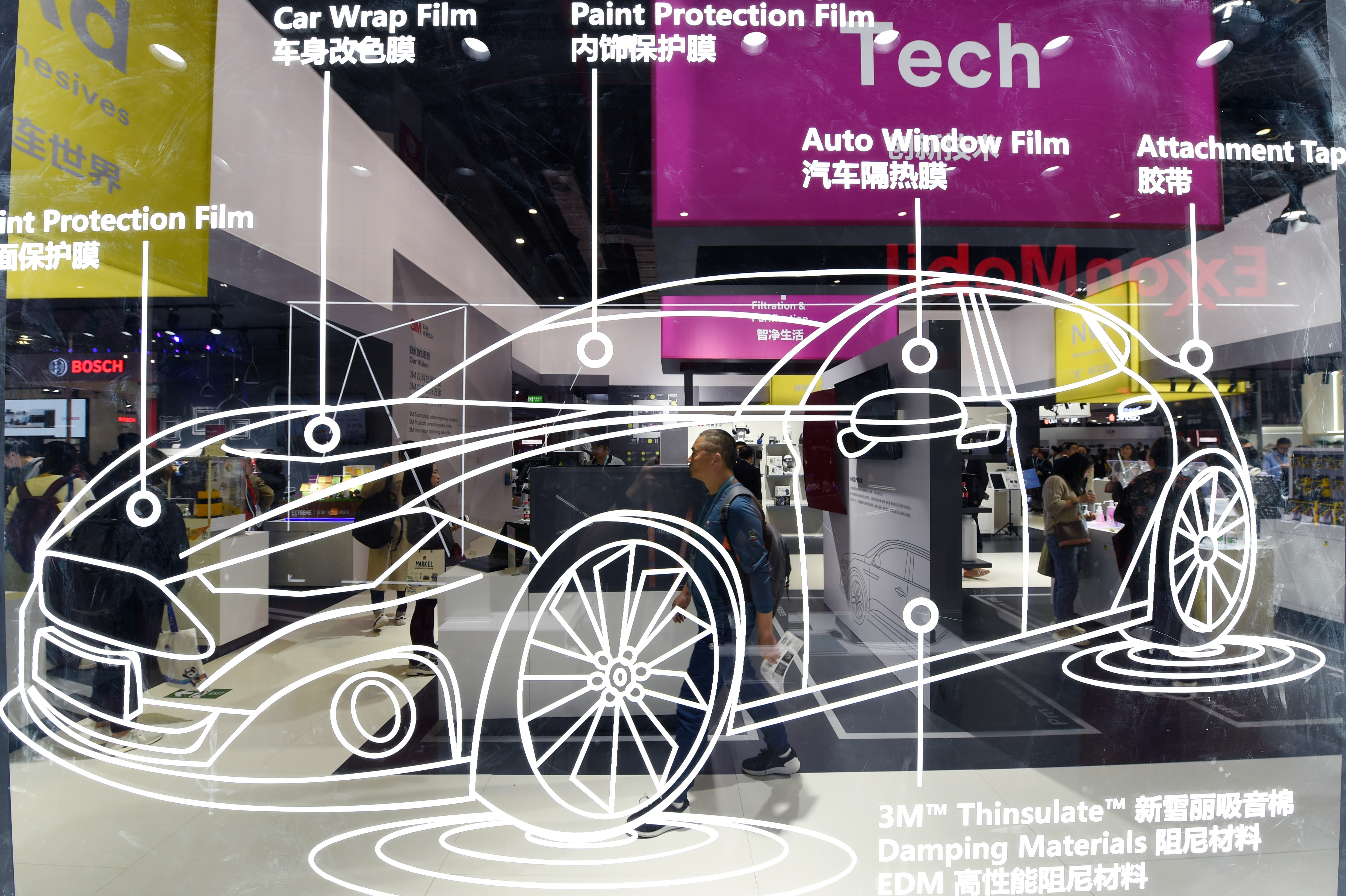 A visitor walks past the booth of 3M Company during the second China International Import Expo (CIIE) in Shanghai, east China, on Nov. 7, 2019. A total of 192 U.S. companies participated in the expo, an increase of 18 percent over last year. The floor space of U.S. exhibition area reached 47,500 square meters, taking up the largest exhibition area among all participating countries. (Xinhua/Fan Peishen)