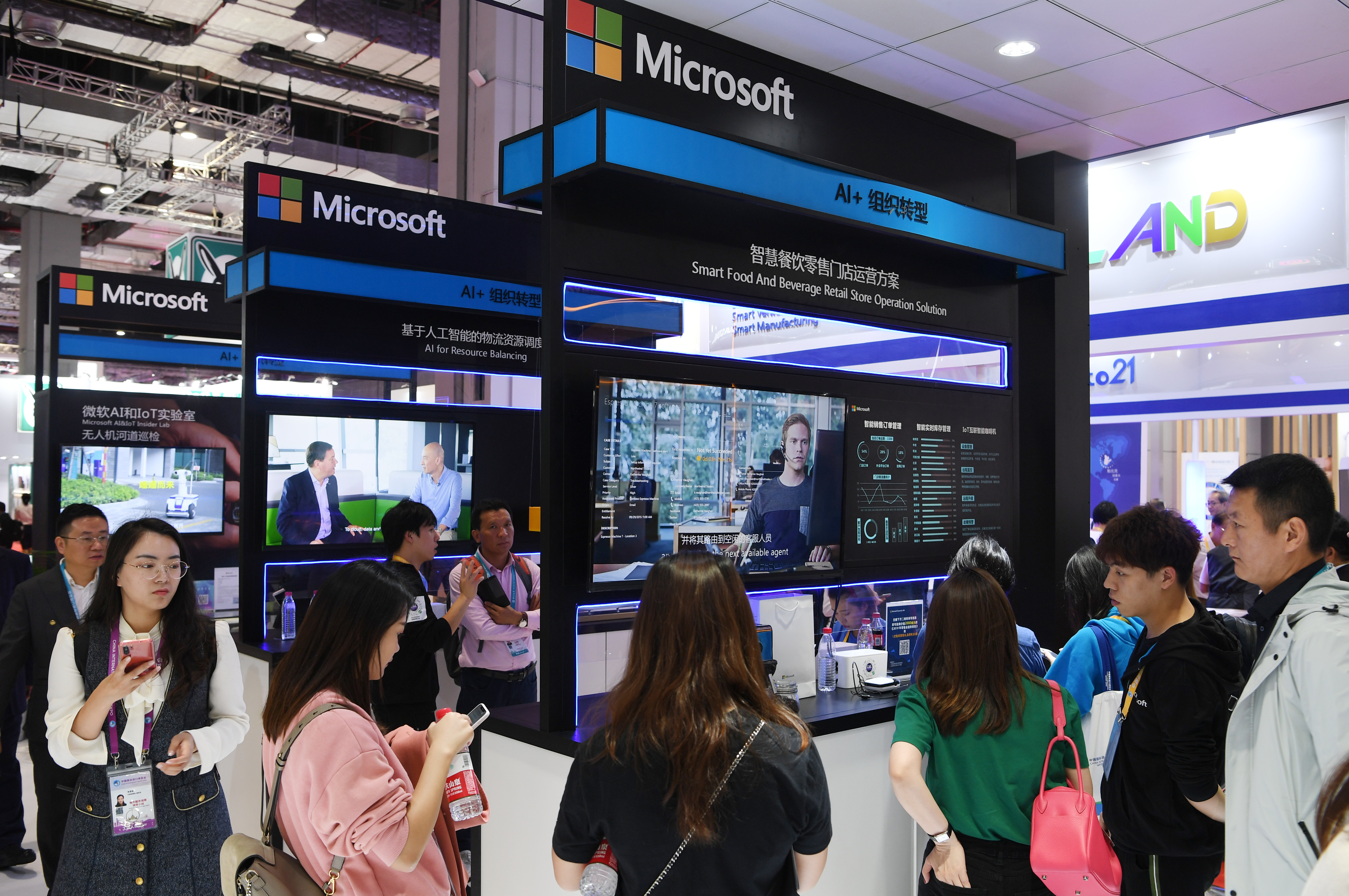 People visit the booth of Microsoft Co., Ltd. during the second China International Import Expo (CIIE) in Shanghai, east China, on Nov. 7, 2019. (Xinhua/Fan Peishen)