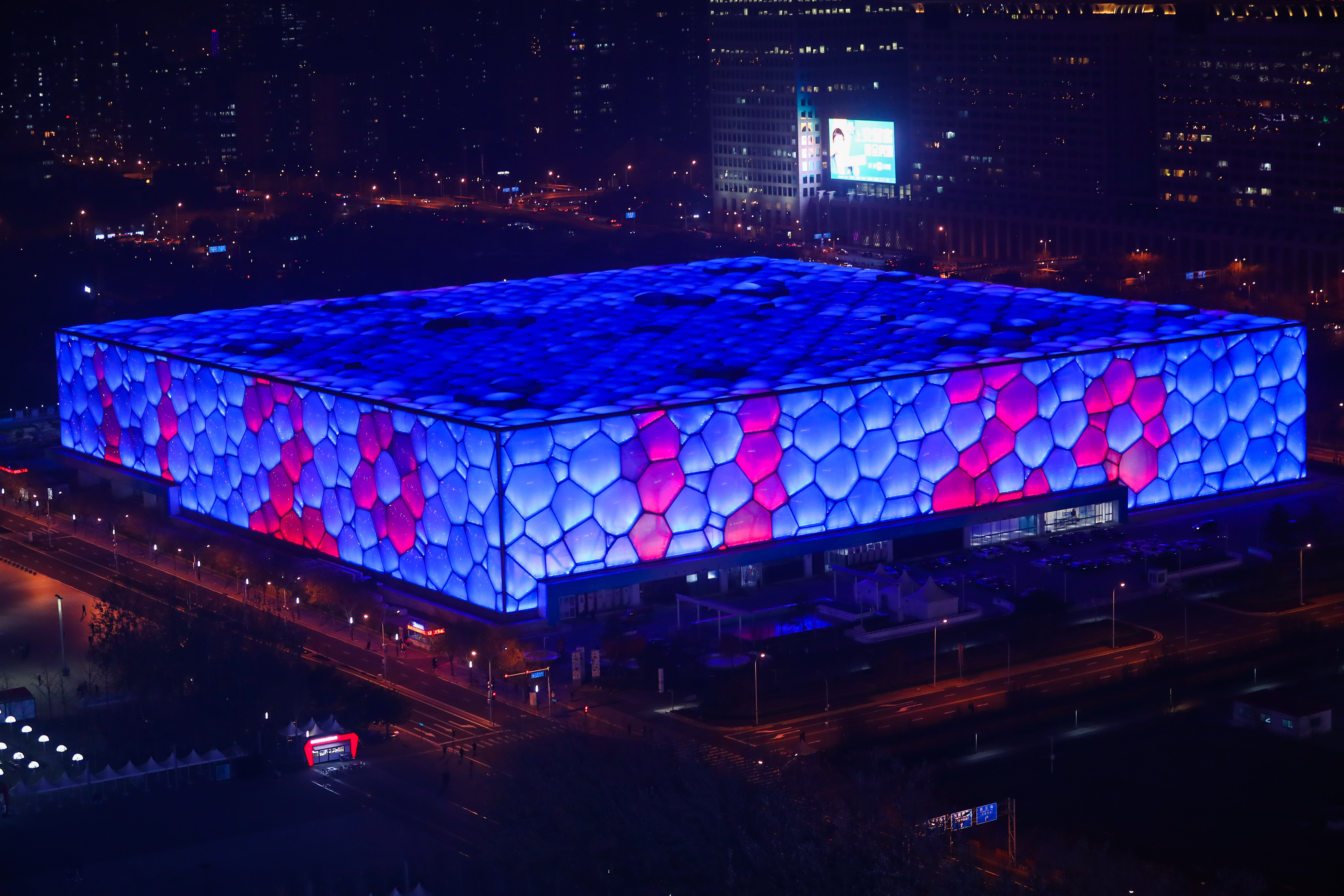 The National Aquatics Center, or the "Water Cube", exhibits the numbers "1120" along with blue lighting to mark World Children's Day 2019 in Beijing, capital of China, Nov. 20, 2019. (Xinhua/Zhang Yuwei)
