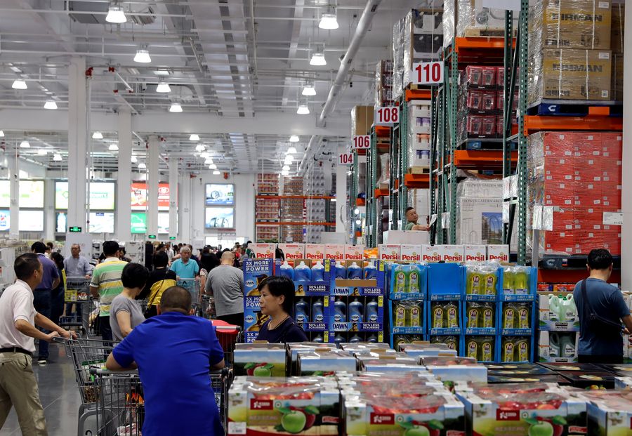 Customers shop in a Costco warehouse store in Minhang District, east China's Shanghai, Sept. 19, 2019.(Xinhua/Liu Ying)