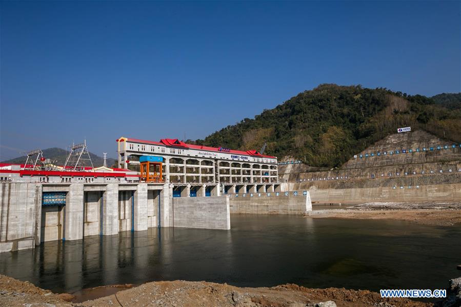 Photo taken on Dec. 25, 2019 shows the hydropower station where the first power generation unit of Nam Ou River Cascade Hydropower Project's second phase was installed in Luang Prabang, Laos. (Photo by Kaikeo Saiyasane/Xinhua)