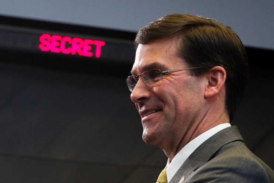 U.S. Secretary of Defense Mark Esper attends the meeting of the North Atlantic Council in Defence Ministers' session at the NATO headquarters in Brussels, Belgium, Oct. 25, 2019. (Xinhua/Zheng Huansong)