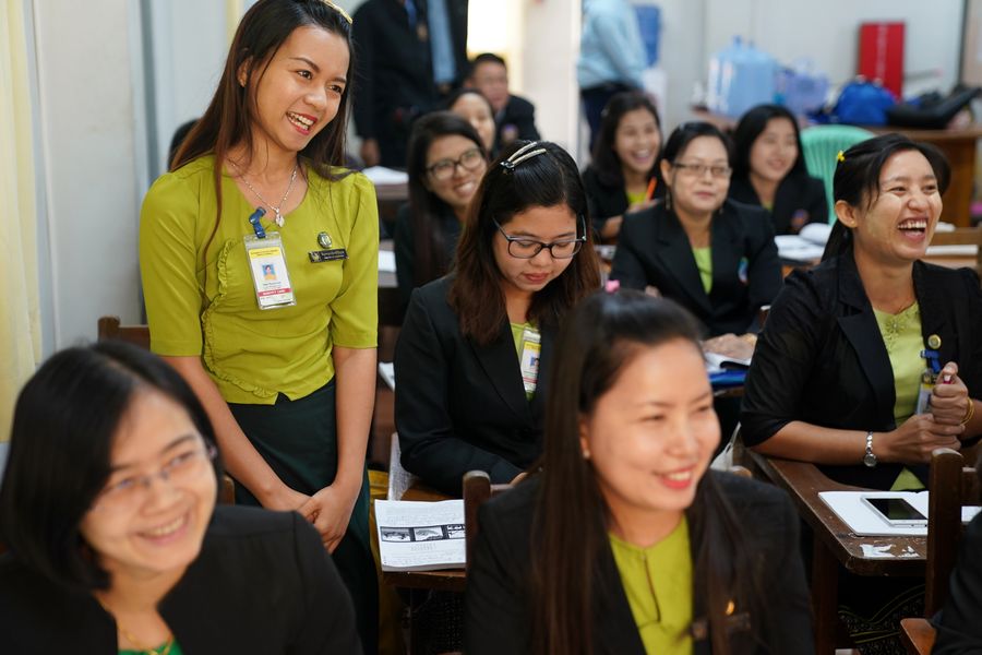 In a classroom here in Myanmar's capital, Lu Rui, a postgraduate from China's Yunnan Normal University, was teaching Chinese in Myanmar Eastern Language and Business Center to over 30 civil servants from Myanmar's Ministry of Commerce.