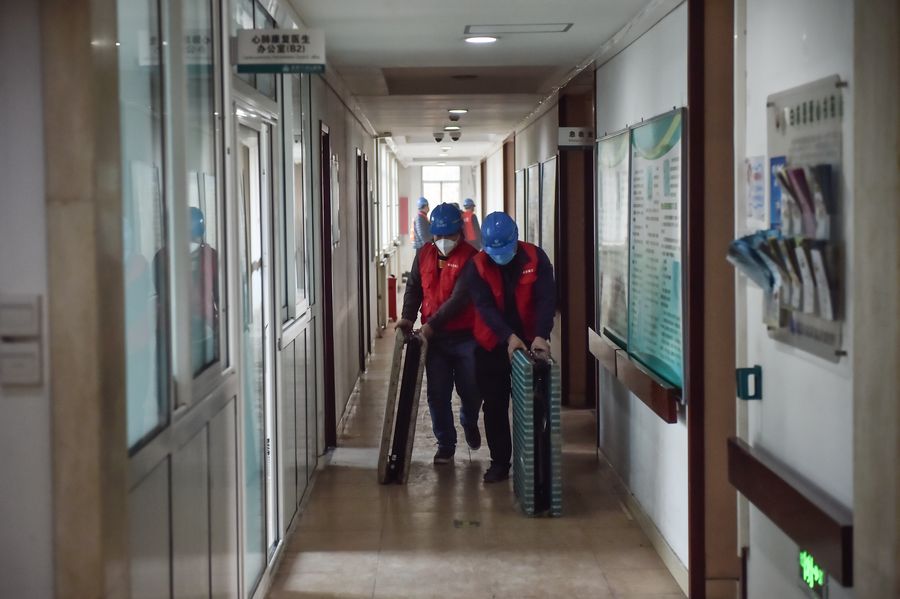 People work at the Xiaotangshan Hospital which is under renovation in Beijing, capital of China, Jan. 30, 2020. Beijing has begun to renovate its hospital Xiaotangshan, formerly used to quarantine SARS patients, as a precaution in the face of the novel coronavirus outbreak, according to a press conference on Thursday. (Xinhua/Peng Ziyang)