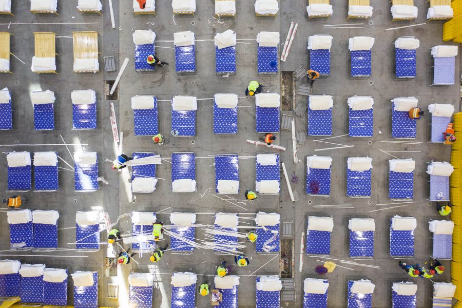 Wuhan, the capital of Hubei Province, has converted an exhibition center into a hospital with 1,800 beds. As of Wednesday afternoon, conversion work has started on 10 other venues, including gymnasiums, sports centers and a high school, and two more such hospitals have been planned. They can provide a total of over 10,000 beds.