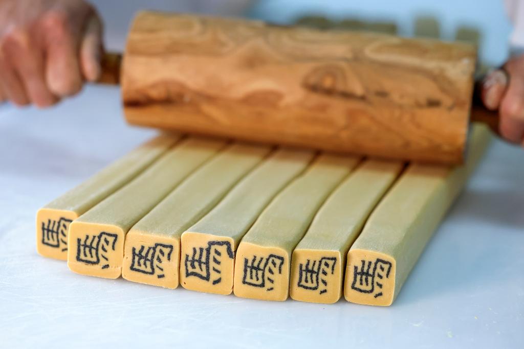 The making process of the candy includes boiling sugar, grinding powder, stirring, compacting, making inlaid characters, stretching sugar bar and slicing. Because the character embedded in the center of the candy always carries auspicious meanings, such candy is very popular during festivals.