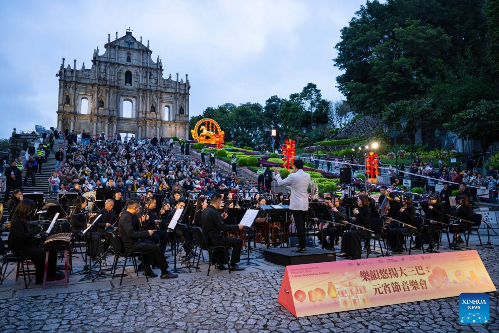 This photo taken on March 3, 2026 shows a concert in celebration of the Lantern Festival in front of the Ruins of St. Paul's in south China's Macao. Across China, a variety of vibrant activities were held in celebration of the Lantern Festival, which falls on the fifteenth day of the first month of the Chinese lunar calendar, or March 3 this year. (Xinhua/Cheong Kam Ka)
