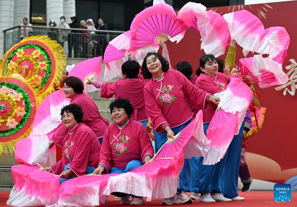 People perform a folk dance in celebration of the Lantern Festival in Qingdao, east China's Shandong Province, March 3, 2026. Across China, a variety of vibrant activities were held in celebration of the Lantern Festival, which falls on the fifteenth day of the first month of the Chinese lunar calendar, or March 3 this year. (Xinhua/Li Ziheng)