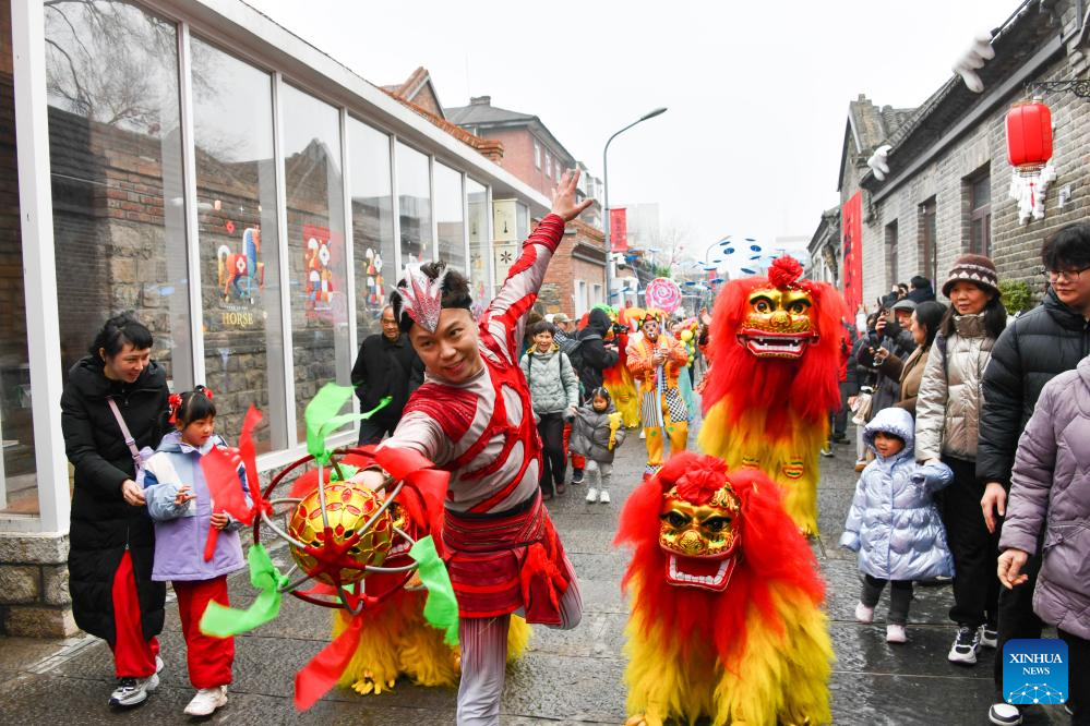 People watch a lion dance in celebration of the Lantern Festival in Jinan, east China's Shandong Province, March 3, 2026. Across China, a variety of vibrant activities were held in celebration of the Lantern Festival, which falls on the fifteenth day of the first month of the Chinese lunar calendar, or March 3 this year. (Xinhua/Xu Suhui)