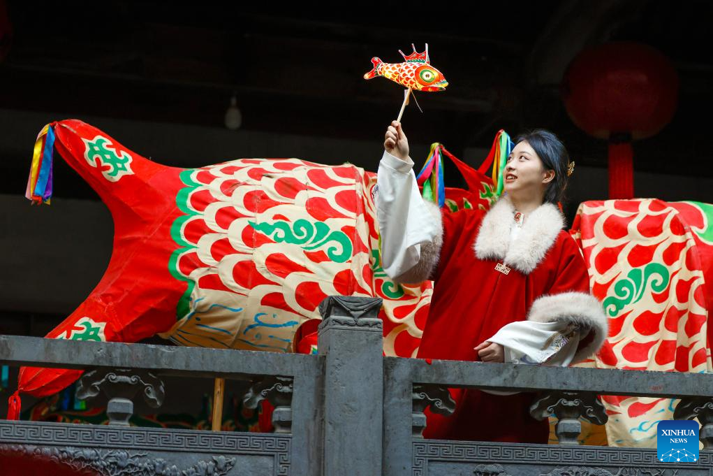 Nowadays, apart from parades with fish-shaped lanterns, local people have made efforts on developing new business forms related to the fish-shaped lantern including tourism and cultural and creative products. (Xinhua/Zhang Duan)