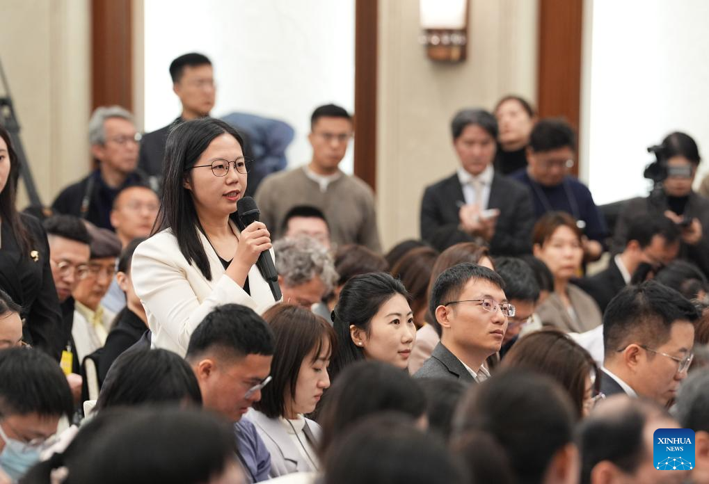A journalist asks a question at a press conference of the fourth session of the 14th National People's Congress (NPC) at the Great Hall of the People in Beijing, capital of China, March 4, 2026. The NPC, China's national legislature, held a press conference on Wednesday, one day ahead of the opening of its annual session. (Xinhua/Jin Liwang)