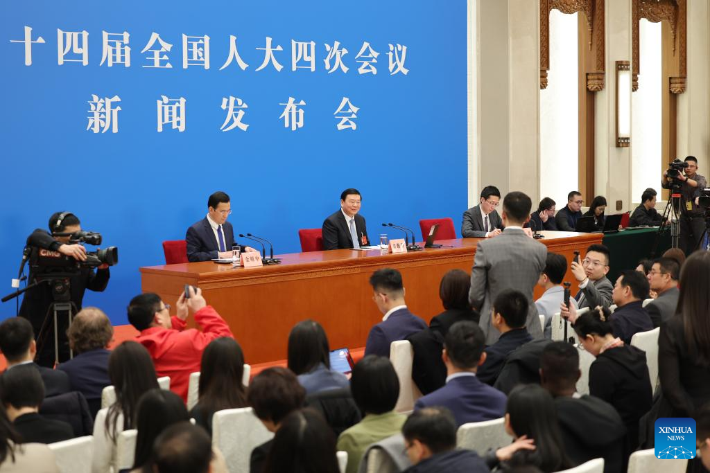 Lou Qinjian, spokesperson for the fourth session of the 14th National People's Congress (NPC), attends a press conference at the Great Hall of the People in Beijing, capital of China, March 4, 2026. The NPC, China's national legislature, held a press conference on Wednesday, one day ahead of the opening of its annual session. (Xinhua/Wang Xi)