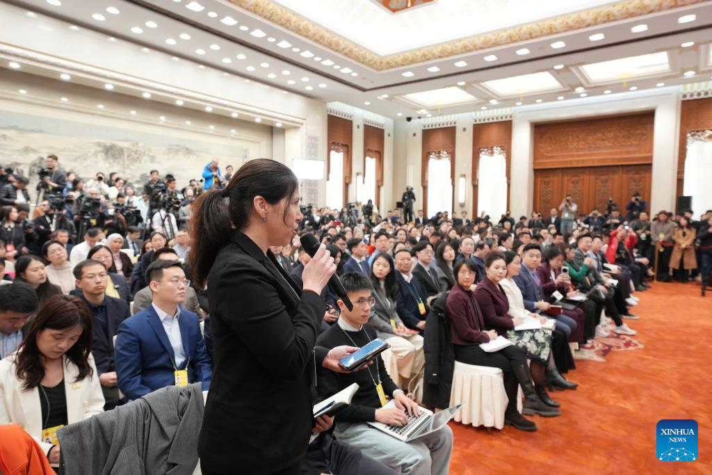 A journalist asks a question at a press conference of the fourth session of the 14th National People's Congress (NPC) at the Great Hall of the People in Beijing, capital of China, March 4, 2026. The NPC, China's national legislature, held a press conference on Wednesday, one day ahead of the opening of its annual session. (Xinhua/Xing Guangli)
