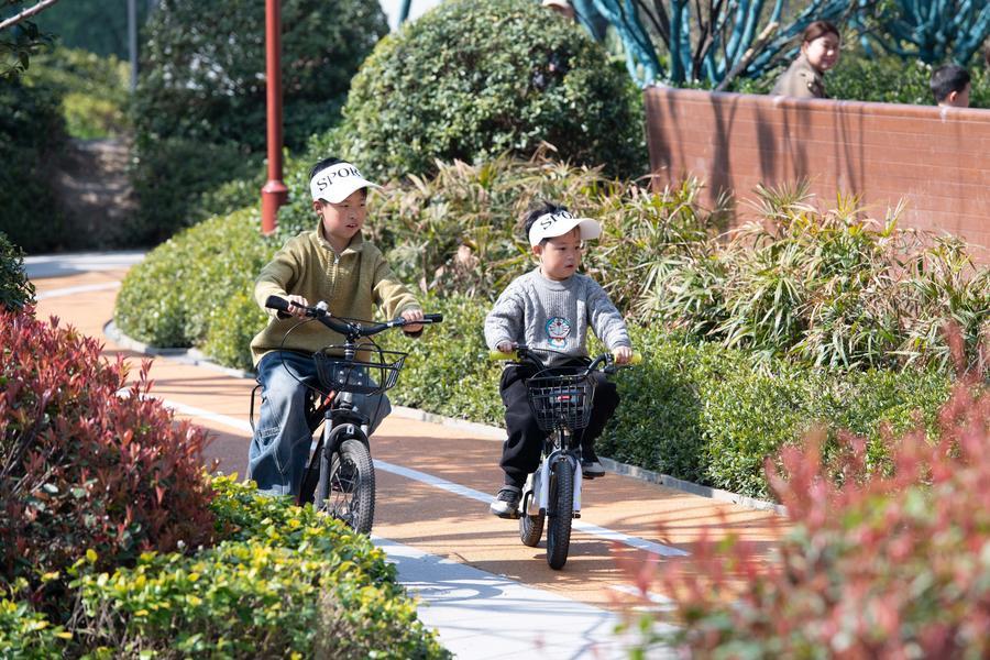A drone photo taken on Jan. 31, 2026 shows the Modian old street in Hefei, east China's Anhui Province. (Photo by Zhang Min/Xinhua)Children ride bicycles at a pocket park built on a former railway station in Yaohai District of Hefei, east China's Anhui Province, March 14, 2026. (Xinhua/Zhang Duan)A tourist poses for photos at the Modian old street in Hefei, east China's Anhui Province, March 14, 2026. (Xinhua/Zhang Duan)A woman and a child have fun at a pocket park built on a former railway station in Yaohai District of Hefei, east China's Anhui Province, March 11, 2026. (Xinhua/Zhang Duan)A citizen (L) buys lotus roots at the Siwan vegetable market in Luyang District of Hefei, east China's Anhui Province, March 11, 2026. (Xinhua/Zhang Duan)■
